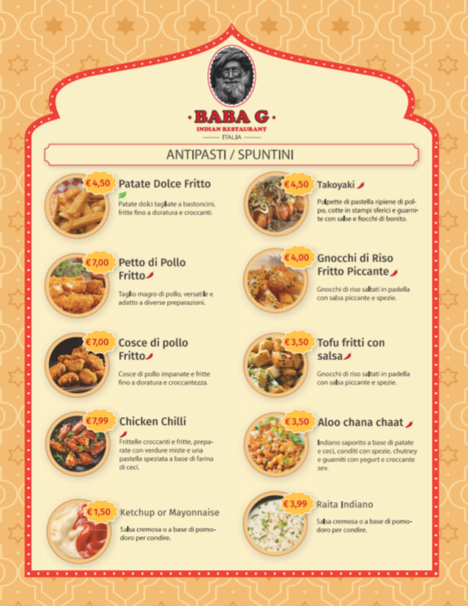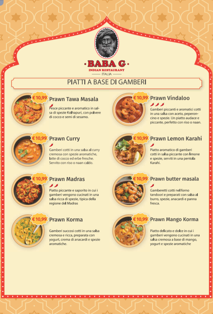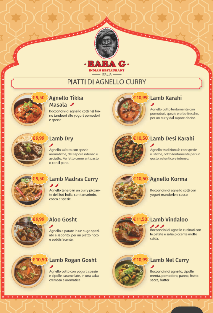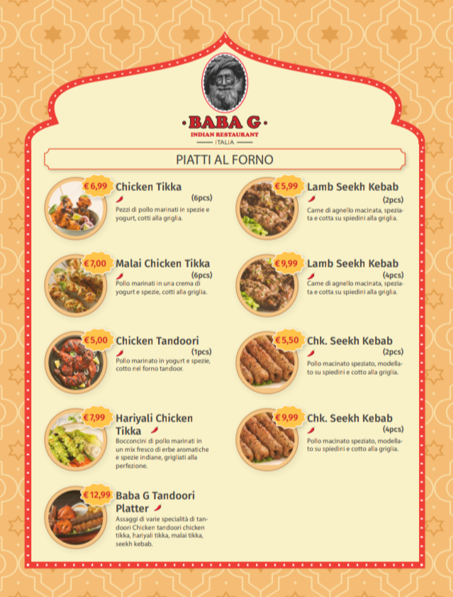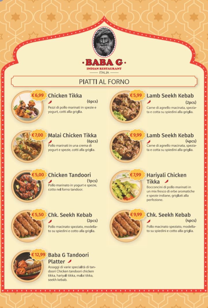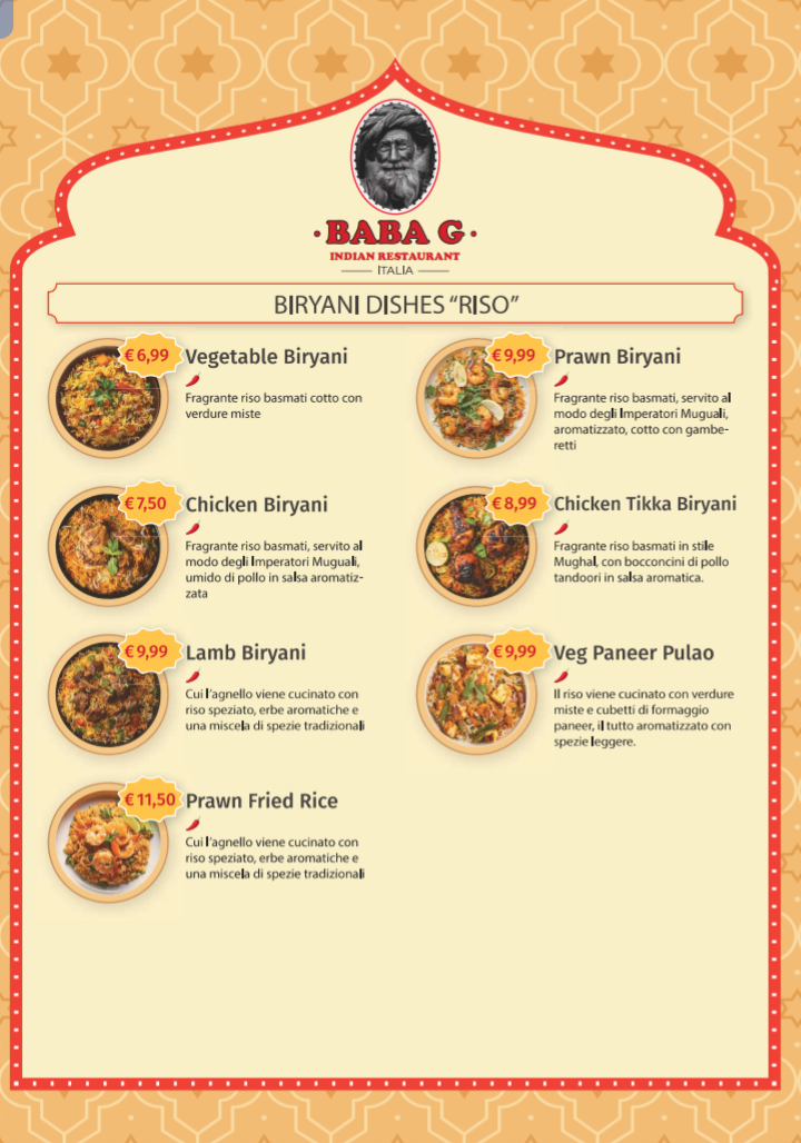 The menu at Baba G Indian Take Away Restaurant offers a variety of Indian, Bangladeshi, and Pakistani dishes, reflecting a range of traditional flavors and culinary styles. It is organized into several key sections to help visitors navigate the available options efficiently.