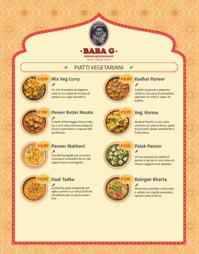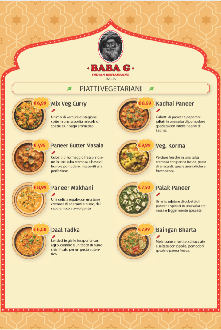 Menu Vegetariano 3 Parsone. Antipasti Missto 10 Pizzs. 2 Riso Bianco. 1 Mix Veg Curry . 1 Paneer Butter Masala. 1 Aloo Gobhi. Butter Naan 2 Pizzs. Coca Cola 3 Pizzs. 1 Salsa Menta
